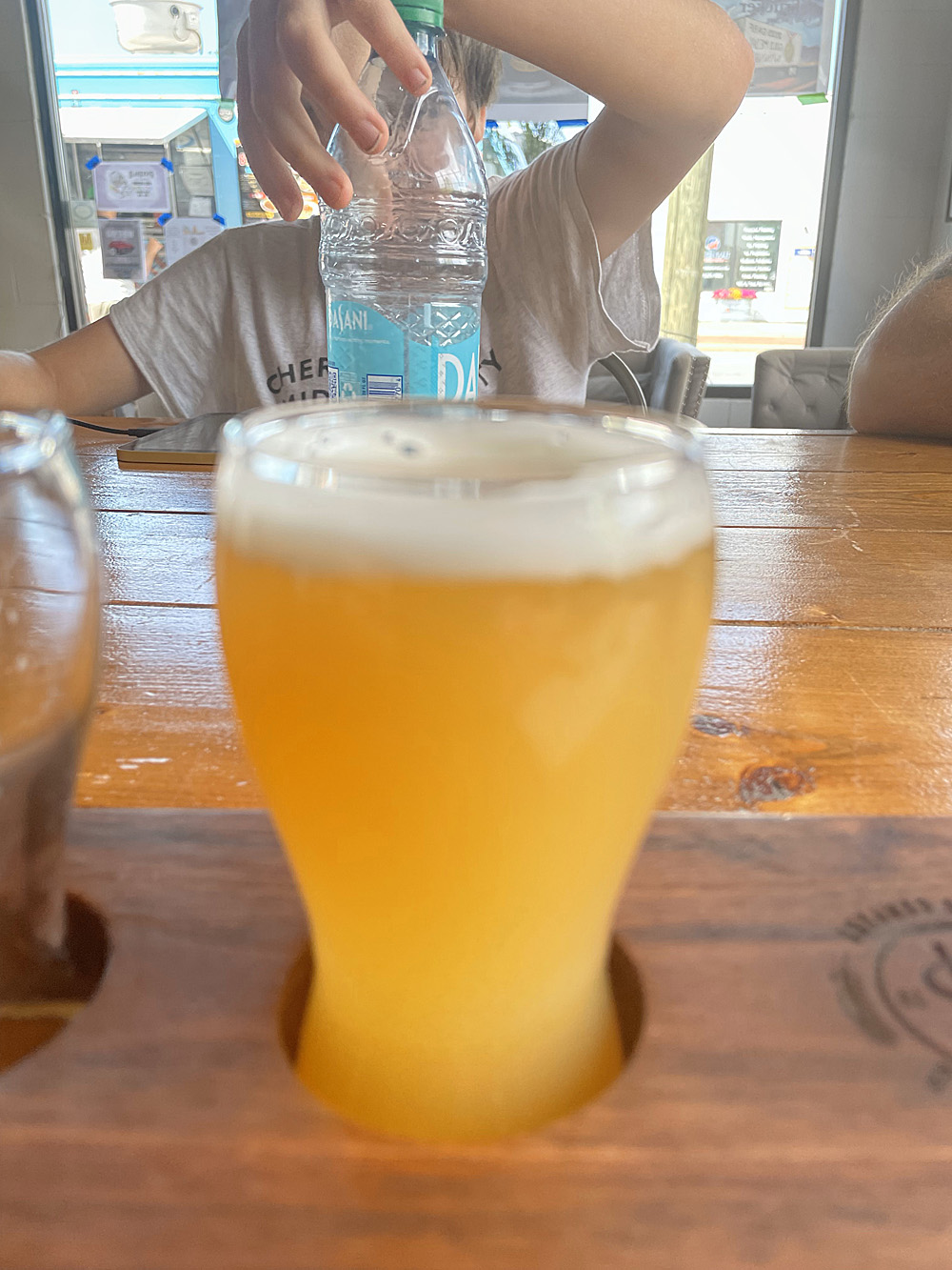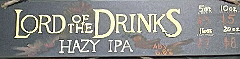 Be that as it may, it was time for beer, and I ordered a flight of four for $12. One of my favorites of these was Lord of the Drinks Hazy IPA, which I liked so much I ordered a pint before we left. I can’t tell you much about the beer other than it has an alcohol content of 6.8% by volume, and I paid $7 for a pint. I can and will share my tasting notes, however.