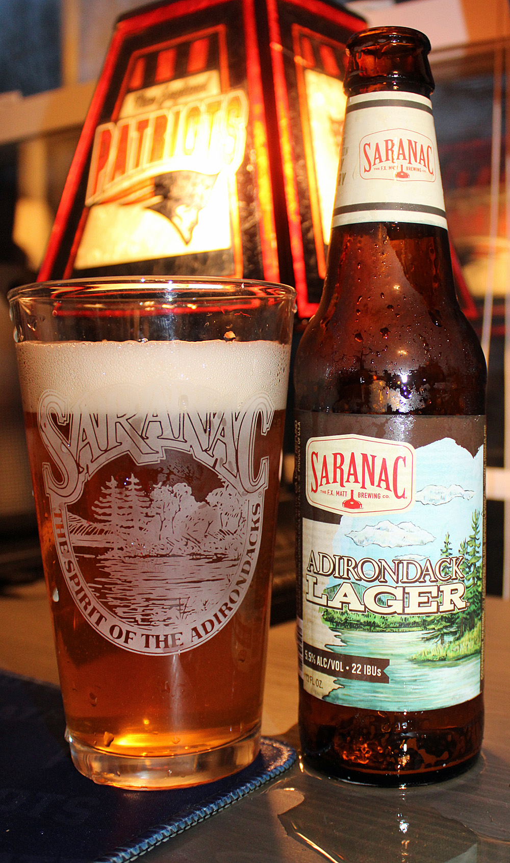 Saranac Adirondack Lager has an alcohol content of 5.5% by volume with 22 IBUs. It runs $10.99 a six-pack locally, when I can find it.