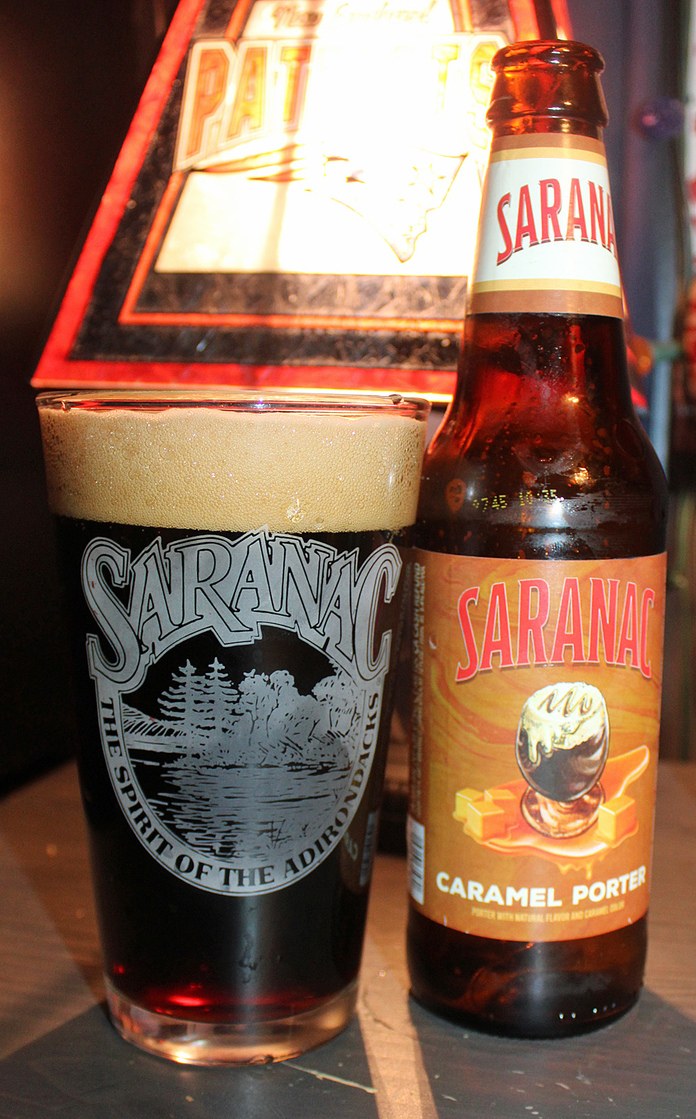 Saranac Caramel Porter pours to a deep chestnut color with a thick creamy tan head and a nose of rich creamy caramel and a hint of dark malt. Taking a sip, the beer is medium to slightly more in body and immediately pops with sweet (but not too sweet) caramel. Chewy Kraft caramels come ti mind, and with the hints of chocolate, a Storck Riesen is suggested as well. There is dry roast and that appears in the finish to balance the beer nicely. A truly underrated brew, and one I absolutely recommend.