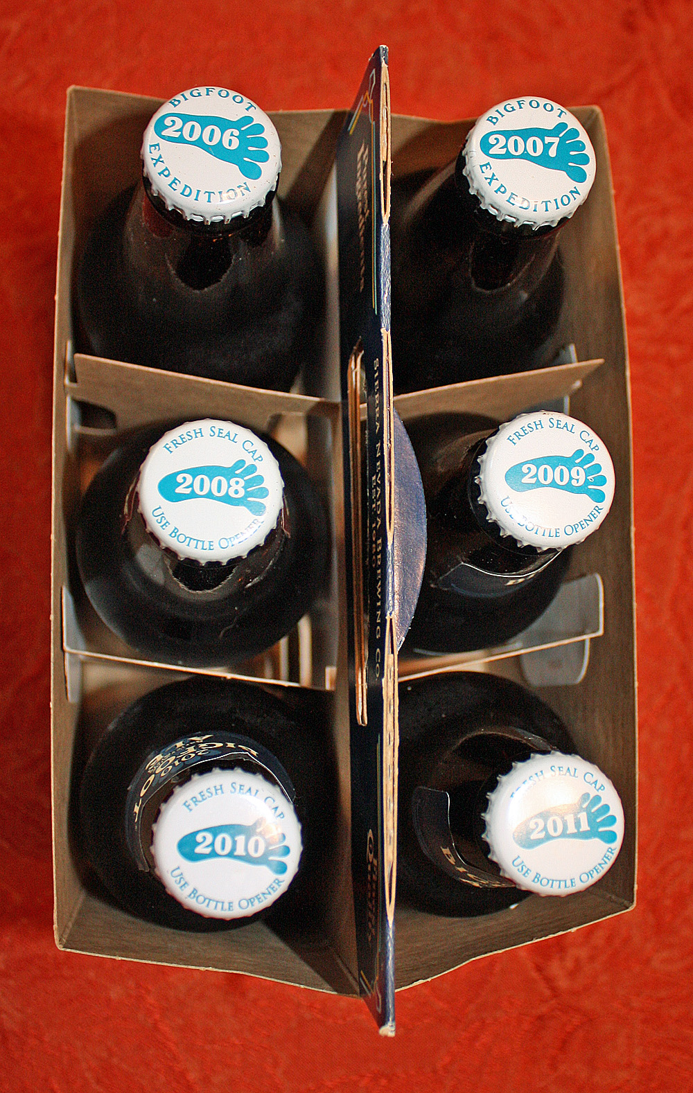vertical tasting of a "six-pack" of Bigfoot from six different years.