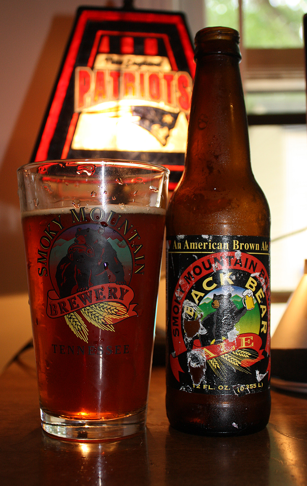 The second has fantastic atmosphere and a great location at the feet of the mountains; I would recommend staying downtown where everything is in walking distance including the Smoky Mountain Brewery. They offer a fair array of decent if not exceptional beers at fantastic prices. One of these is the beer under consideration tonight: Smoky Mountain Black Bear Ale. I got a six-pack for $5.99 at the brewery. Pints were $3.50, growler fills $8, and amazingly, they have 99 cent pints weeknights after 9 PM.