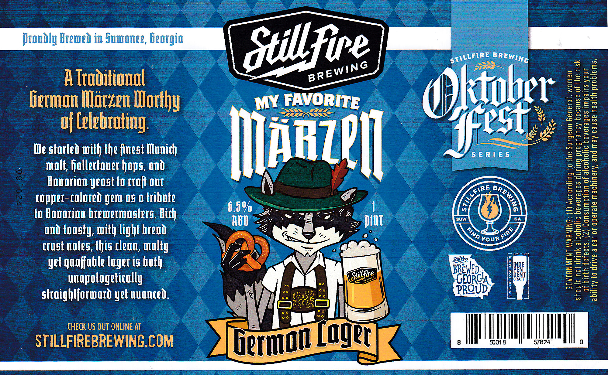 It was a legendary beer run. I headed off to Total Wine in Alpharetta because they were the only ones who seemed to have my beloved Tucker Tucktoberfest in six-packs, and you know they had it. I brought a sixer home. They had more goodies, though. Six-packs of Round Trip Oktoberfest, Brooklyn Brown Ale, and Dogfish Punkin Ale also came with me, as well as a 4-packs of Kentucky Pumpkin Barrel Ale (which I had not been able to find last year) and Mason Ale Works Dankenstein’s Monster Unfiltered Double IPA. There were more beers to be sure, the rest all in singles except for one: I bought a 4-pack of Stillfire My Favorite Marzen Oktoberfest Lager.