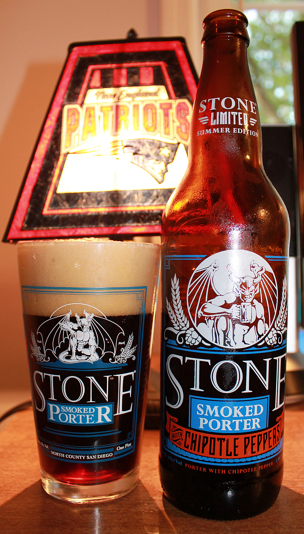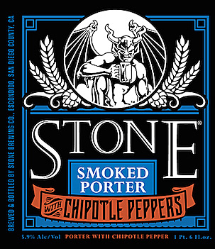 From the painted label bottle of Stone Smoked Porter with Chipotle Peppers: