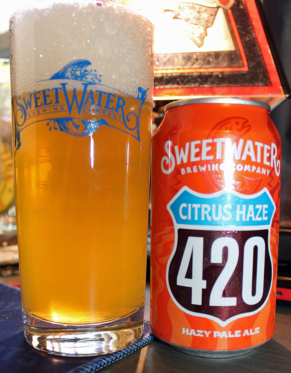 I bought a can of Sweetwater 420 Citrus Haze at Total Wine not so long ago, and I’m here to tell you about it today. Problem is, there’s not a lot of background information on the beer. It’s not listed on the brewery website, you see. It’s a variation on the classic Sweetwater 420 Extra Pale Ale, this much I do know. I mean, the 420 is right there in the name.