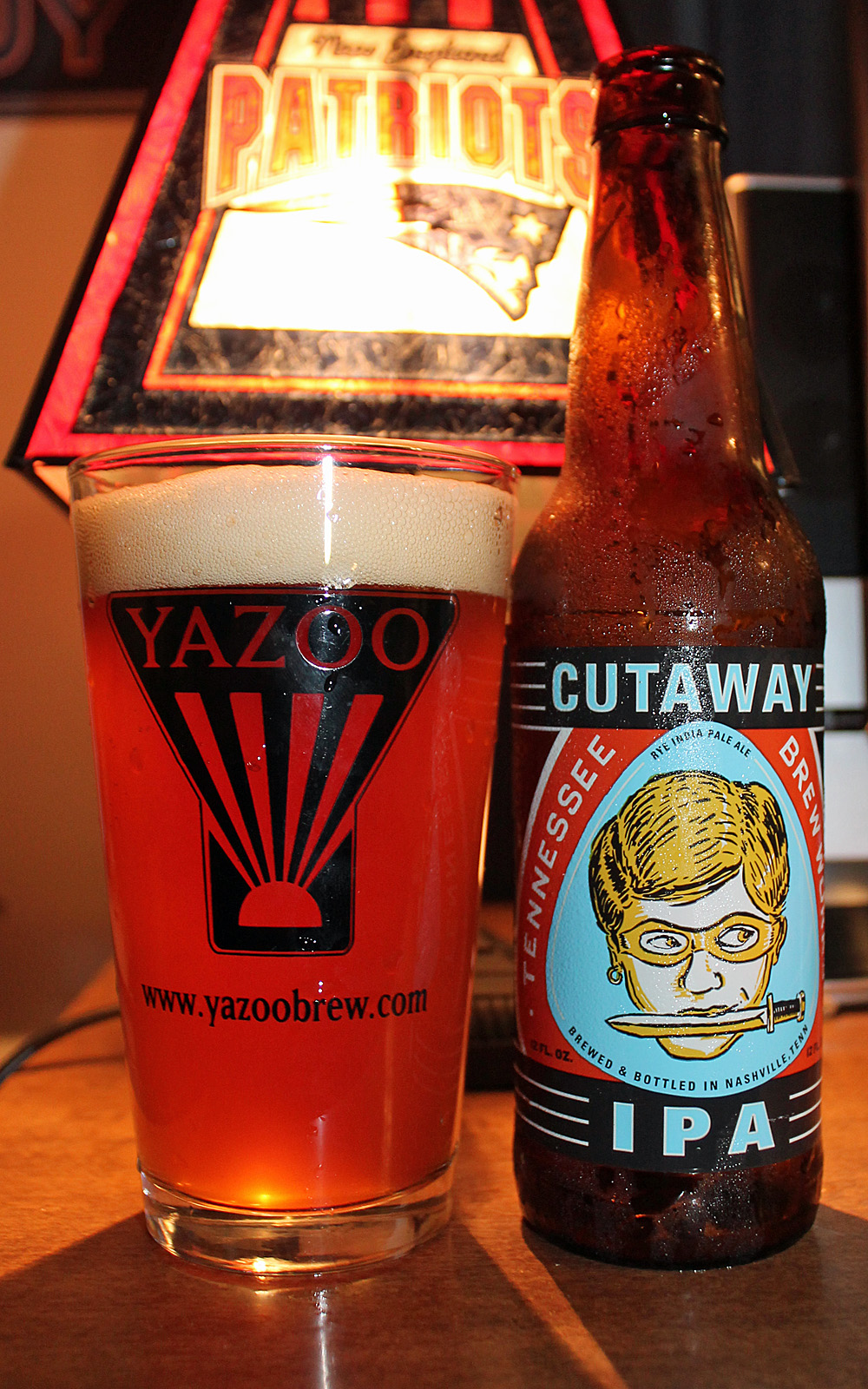 Tennessee Brew Works Cutaway IPA pours to a brilliant orange amber color with a thick creamy head of foam and a flowery herbal hop nose. Taking a sip the beer has a fresh crisp light caramel maltiness followed by spicy rye, soft citrus fruit and a long dry and very bitter herbal grassy hop finish. I’m very impressed with this beer, a delightful balance of chewy malt, spicy rye and herbal bitter hops.