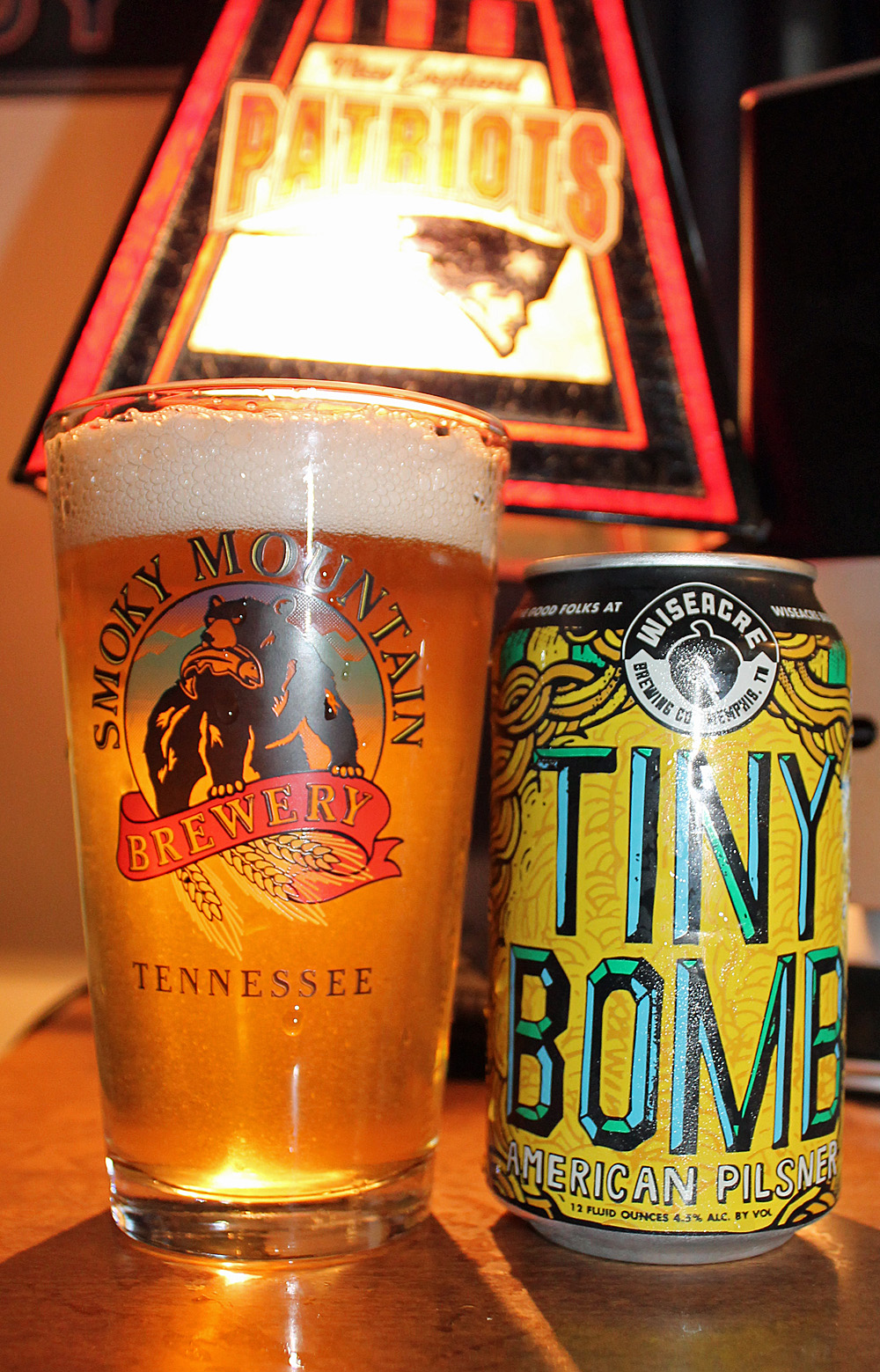 Wiseacre Tiny Bomb American Pilsner has an alcohol content of 4.5% by volume with 35 IBUs. It’s made with German Pilsner Malt, Mt. Hood and Bravo hops and fermented with a German lager yeast strain. It was running $8.99 a six-pack in Spring Hill, TN.