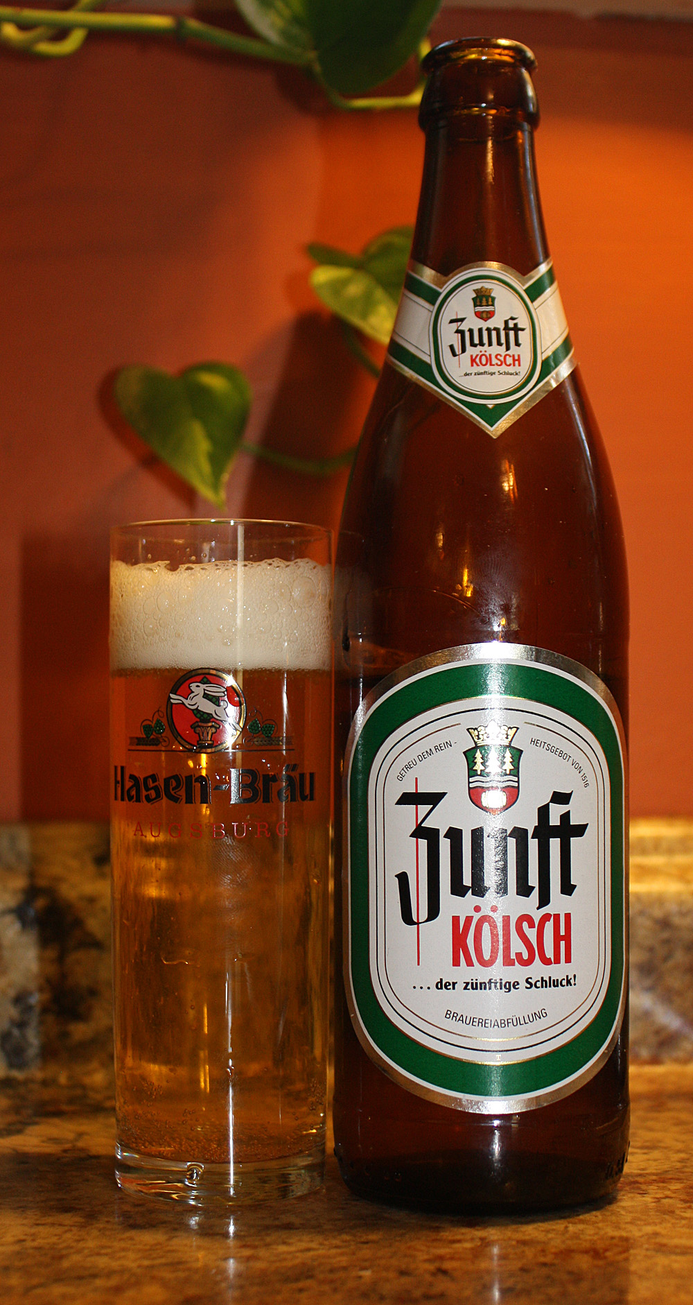 Zunft Kolsch pours to a pale golden color with a light head of foam and a slightly fruity, herbal Noble hoppy nose. Tasking a sip, the beer seems immediately a natural for warmer weather. The crisp, biscuit malt comes straight to the fore followed by hints of apple and pear fruit that the nose promised. Then there are some grassy, herbal and slightly bitter German hops to round things off nicely.